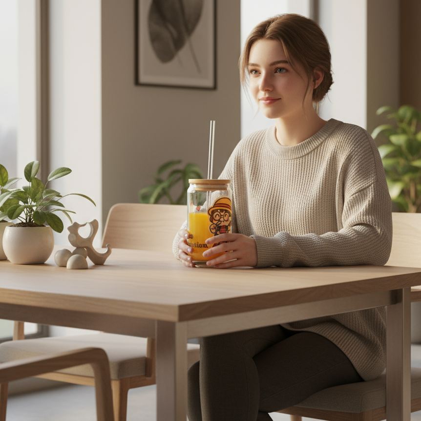 Sip joy in every moment with this 16oz glass tumbler. Featuring clear tempered glass, a bamboo lid, and reusable straw, it blends everyday function with storybook charm—perfect for any drink, any occasion.