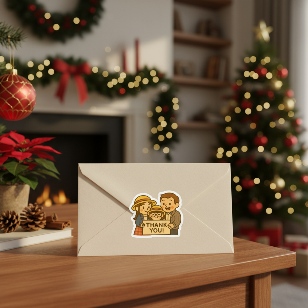 This heart-warming kiss-cut vinyl decal features Cara and her parent from the Cara Family, sharing a simple, uplifting message of gratitude. It’s a cheerful little reminder to say “thanks” that brightens laptops, water bottles, notebooks, car windows—anywhere you want a pop of appreciation.